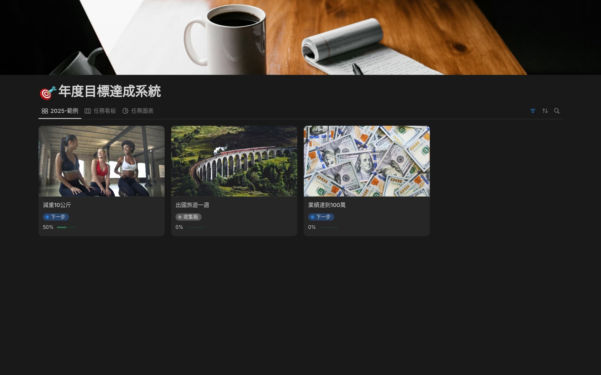 將範本新增至工作空間後,你可以依照需求盡情變更、編輯或更新內容。範本是輔助工具,助你建立心中理想的工作空間。